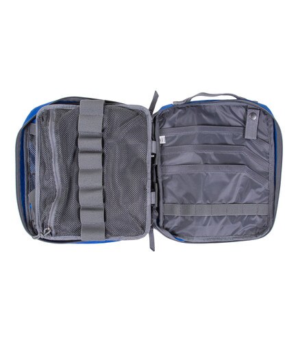 The Airway Kit features individual mesh pouches that provide ample space for your 5 Miller and 5 Mac Blades. The book style pouch allows this kit to have a place in your bag rather than being thrown in a corner and the innovative designs provides a new way of holding the 2 forceps. A bright blue color and DotTac Name Tape compatibility allows the kit to be easily located or described.