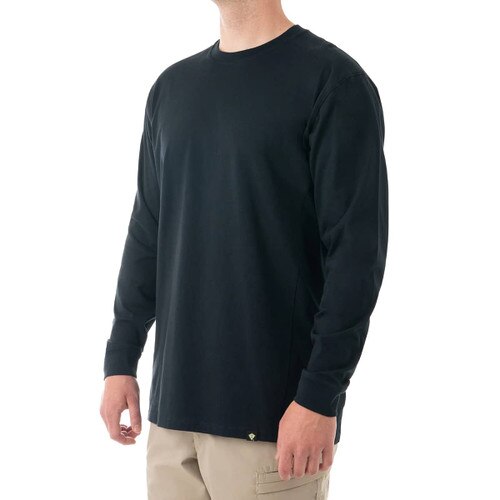 The Tactix Long Sleeve T-shirt was designed to feel great and last. With its fade and shrink resistant 100% cotton jersey, offset shoulder seams, and running gusset — built to minimize overlap to minimize seam thickness and improve mobility — this long sleeve performance t-shirt is an essential addition to a reliable lineup of law enforcement clothing or tactical clothing.
